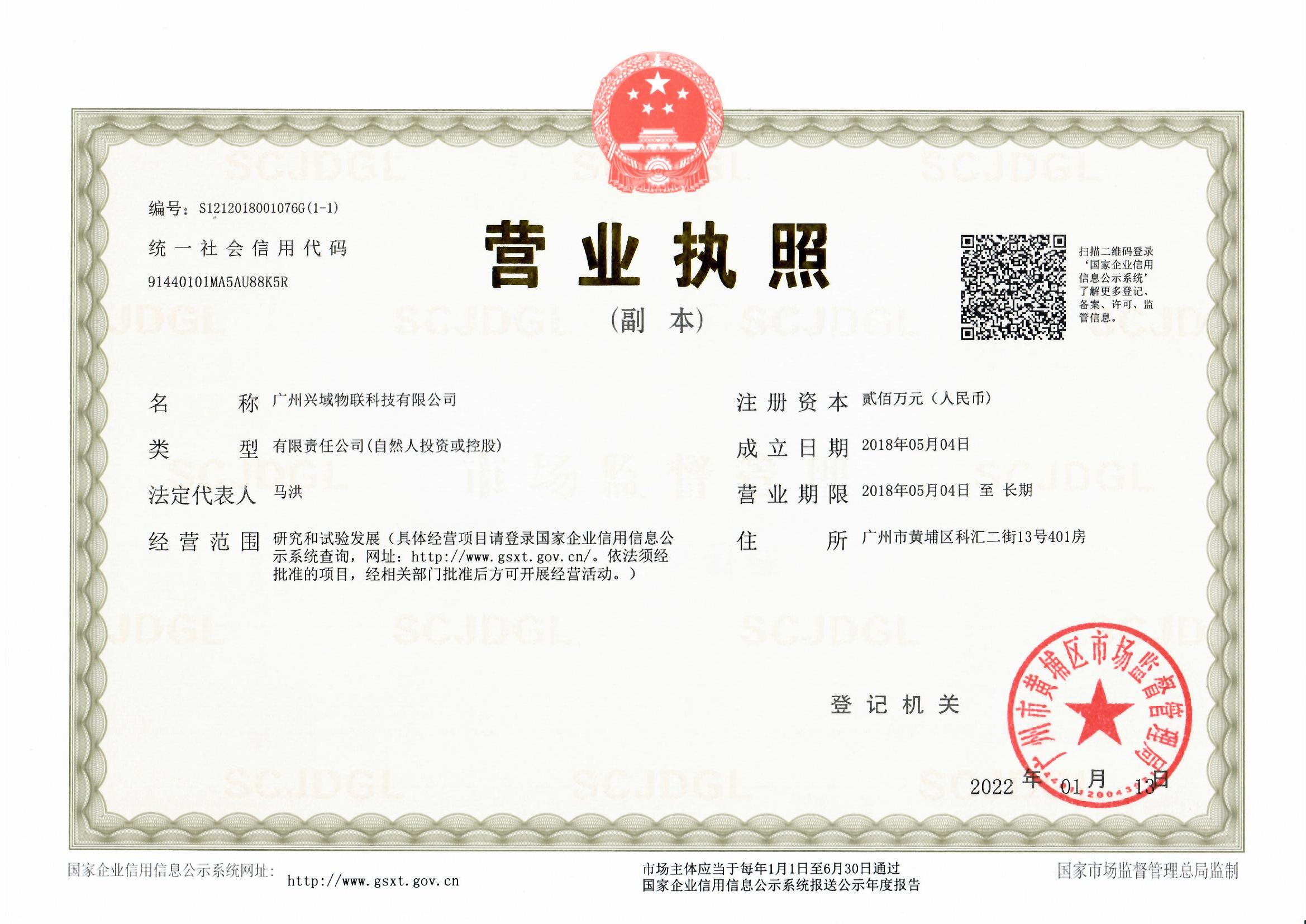 廣州興域物聯(lián)科技有限公司于2018年5月成立,2022年1月由“廣州興育物聯(lián)科技有限公司”更名為“廣州興域物聯(lián)科技有限公司”并搬入現(xiàn)地址,廣州市黃埔區(qū)科匯二街13號(hào)401房。