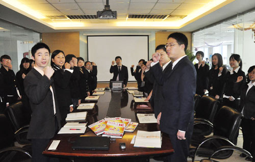 工作人員齊喊十大口號 鼓舞士氣