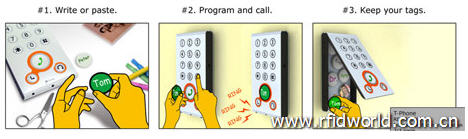 下面這款 RFID產(chǎn)品的目標客戶是老年人,Jeong-Kyun開發(fā)的 T-phone電話機可以幫助老年人撥號。T-Phone結(jié)合 RFID技術(shù),電話的號碼鍵與獨特的RFID鈕扣可以相互交互。當使用者將一個 RFID鈕扣靠近電話時,并按下談話鍵,T-Phone會自動撥打儲存在該 RFID鈕扣鍵里的號碼。