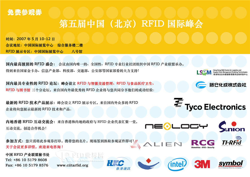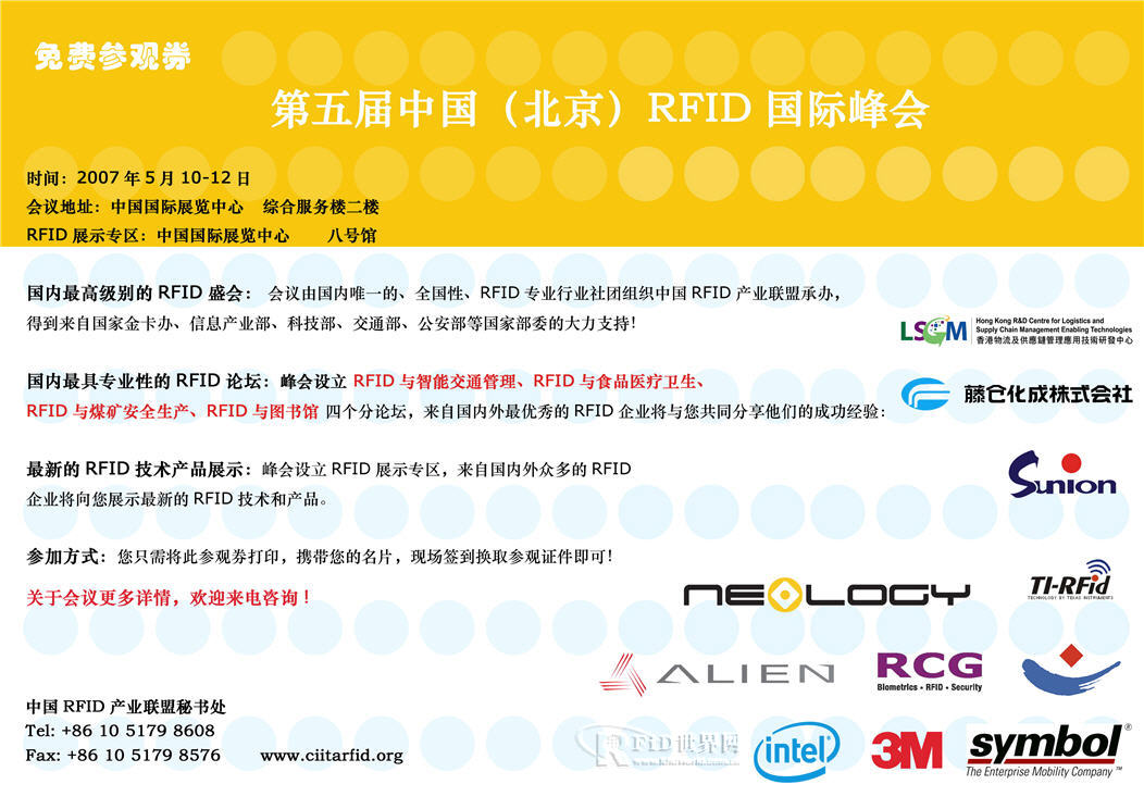 第五屆中國(guó)(北京)RFID國(guó)際峰會(huì)免費(fèi)入場(chǎng)券下載