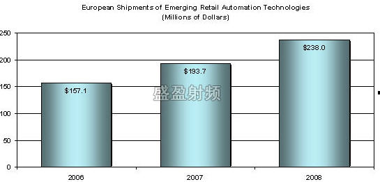 據(jù)VDC(Venture Development Corporation-風(fēng)險投資開發(fā)公司)公司的一項最新調(diào)查,新興技術(shù)(如電子貨架標(biāo)簽、RFID、自動收費設(shè)備)在歐洲零售業(yè)自動化市場的銷售量2006年已經(jīng)超過1.57億美元。VDC的零售業(yè)自動化設(shè)備規(guī)劃服務(wù)部預(yù)計這個市場的年綜合增長率為23%,到2008年年收入可以達(dá)到2.38億美元。雖然近期傳統(tǒng)技術(shù)在市場仍然占據(jù)主導(dǎo)地位,但出于技術(shù)更新周期、終端用戶滿意度提高、銷售價格快速下降等原因,新興技術(shù)會保持長時間的增長勢頭。現(xiàn)場調(diào)查證明采用新興技術(shù)以后的用戶都得到滿意的投資回報也進(jìn)一步佐證上述結(jié)論。