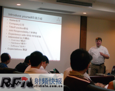 8月7日至10日,美國Alien Technology公司(中文名稱為美國意聯技術公司)在上海張江國家RFID產業(yè)基地舉辦了第一期RFID學院培訓班,約四十人參加了本期培訓班,學員基本上都是來自于RFID國內外知名企業(yè)或研究機構的技術總監(jiān),包括IBM、BEA、ORACLE、NEC、航天金卡、北京聯信永益、山東省標準化研究院、北京富天達等。