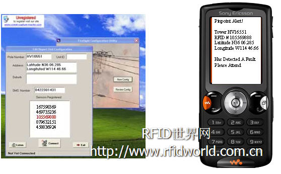 為了防止澳大利亞經(jīng)常發(fā)生灌木火災(zāi),Telepathx還開發(fā)了VRF感應(yīng)器。VRF包括一個(gè)含熱量感應(yīng)器的433 MHZ有源RFID標(biāo)簽。當(dāng)感應(yīng)器發(fā)現(xiàn)周圍溫度高于事先設(shè)定的的2度時(shí),激活RFID標(biāo)簽;標(biāo)簽將其ID號發(fā)送給RTU。RTU將ID號與儲存在內(nèi)存里的數(shù)據(jù)反復(fù)核對后,通過Telepathx網(wǎng)絡(luò)將信息發(fā)送相關(guān)的人員的手機(jī)上。