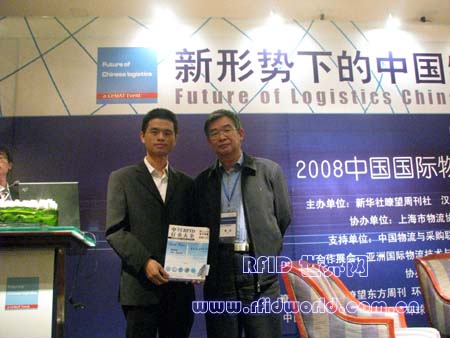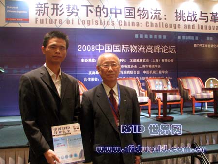 中國物流與采購聯(lián)合會(huì)副會(huì)長、全國物流標(biāo)準(zhǔn)化技術(shù)委員會(huì)副主任戴定一先生和RFID世界網(wǎng)記者合影