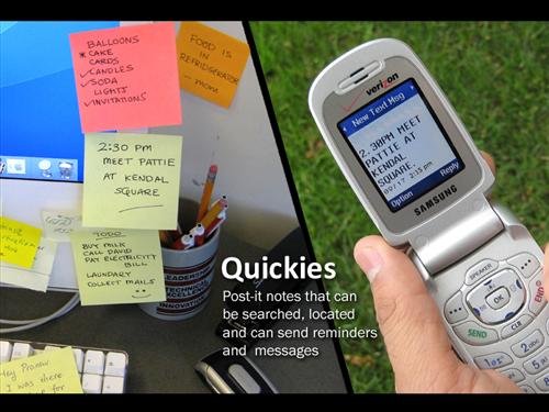像便箋這種產(chǎn)品,看起來似乎是沒有什么可以向高科技發(fā)展的前途。不過來自美國麻省理工學(xué)院的研究人員發(fā)明了這樣一款名為Quickies便箋系統(tǒng),通過整合一些比較前沿的技術(shù)使得傳統(tǒng)的便箋也成了一款高科技的產(chǎn)品。