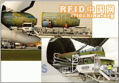 航行器制造商正在配置的射頻識別應(yīng)用程序追蹤被稱為夾具的大金屬框架的位置。夾具被用來完成將大型的航行器部件在總共十三個制造程序和裝配設(shè)備之間的運輸。工人們用一個貨物起重機將夾具運上或抬下一個被稱為“白鯨”巨型貨機,之所以叫“白鯨”,是因為它的設(shè)計外形極像鯨魚。