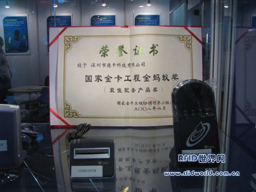 同時,德卡科技還在此次展會捧回了國家金卡工程協(xié)調(diào)領(lǐng)導(dǎo)小組頒發(fā)的國家金卡工程金螞蟻獎的“最佳配套產(chǎn)品獎”。