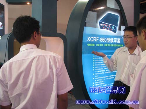 遠(yuǎn)望谷做為國內(nèi)RFID行業(yè)領(lǐng)軍企業(yè)一開展就倍受參觀者關(guān)注,展臺(tái)早早地聚集了前來咨詢交流及洽談的參展來賓。在此次展會(huì)上,遠(yuǎn)望谷以兩款高性能RFID讀寫器為主打。這兩款產(chǎn)品是由遠(yuǎn)望谷銷售總監(jiān)趙元軍在第六屆中國(北京)RFID國際峰會(huì)上親自發(fā)布的,在展臺(tái)配備了專職的技術(shù)人員做詳細(xì)講解。結(jié)合了RFID讀寫器的技術(shù)特點(diǎn)還對其進(jìn)行了簡單的展示,讓來賓們都較清楚地了解新發(fā)布的讀寫器的特性及其應(yīng)用環(huán)境。發(fā)布的兩款讀寫器分別是性能強(qiáng)勁、功能豐富、配置靈活的智能型網(wǎng)絡(luò)閱讀器XCRF-860和特別適合讀取高速移動(dòng)的電子標(biāo)簽的高性能閱讀器XCRF-502E。