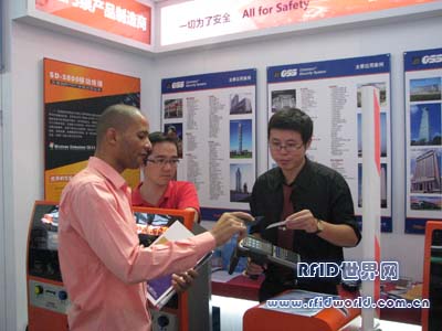 RFID事業(yè)部海外銷售代表謝羽在接待外國觀眾
