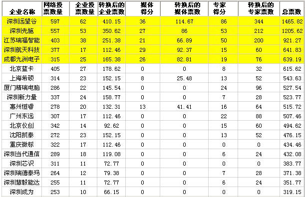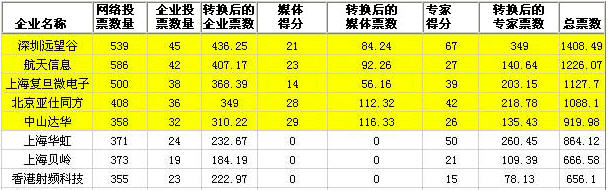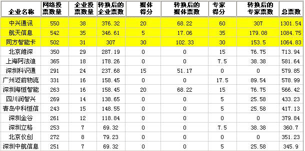 共有4家RFID專業(yè)媒體、10名RFID行業(yè)專家(有1名專家因時間關系棄權)、100家RFID企業(yè)和數(shù)千名的網(wǎng)友參與了本次評選投票。