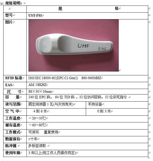 國內(nèi)首款超高頻帶有EAS功能的RFID硬標(biāo)簽-UST-F01