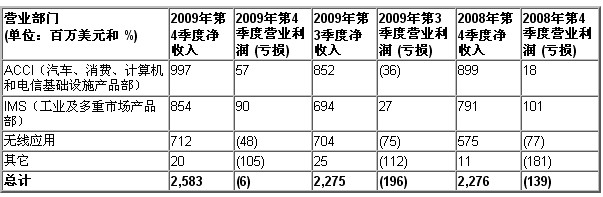 2009年第四季度意法半導體凈虧損收窄到7000萬美元,每股虧損0. 08美元;上個季度和去年同期虧損分別為2.01億美元和3.66億美元。按照會計調(diào)整原則,不計入資產(chǎn)減值支出、重組支出、非臨時減值支出(OTTI)和歸屬母公司股東的金融資產(chǎn)虧損*,意法半導體報告2009年第四季度凈利潤為3600萬美元或每股0.04美元。