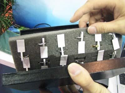 遠(yuǎn)望谷還展示了新近推出的珠寶管理系統(tǒng)。遠(yuǎn)望谷將UHF RFID技術(shù)引入珠寶飾品管理,為貴重的珠寶飾品貼上RFID標(biāo)簽,結(jié)合安裝在柜臺(tái)上的盤點(diǎn)設(shè)備用來監(jiān)測(cè)、控制和跟蹤貼標(biāo)的珠寶飾品,實(shí)現(xiàn)了飾品的快速盤點(diǎn)、實(shí)時(shí)跟蹤及銷售管理智能。展臺(tái)工作人員李先生表示:“該套系統(tǒng)實(shí)現(xiàn)了珠寶飾品的實(shí)時(shí)監(jiān)控,從進(jìn)出到銷售過程,進(jìn)行了全方位的跟蹤和記錄,不但能提高珠寶盤點(diǎn)的效率,同時(shí)也能減少珠寶的遺失概率。這種自動(dòng)化和準(zhǔn)確高效的新方法或?qū)⑷〈嗽痉爆嵑偷托У娜斯す芾砗蜅l碼掃描模式。”