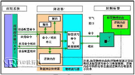 RFID 系統(tǒng)因應(yīng)用不同其組成會有所不同,但基本都由射頻標簽 (Tag)、閱讀器(Reader)和應(yīng)用系統(tǒng)(Processor)三大部分組成。
