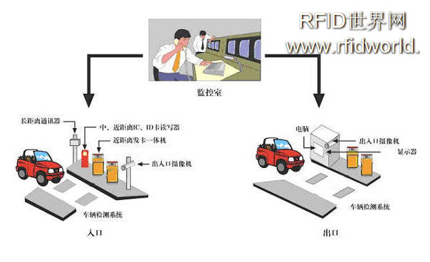 RFID遠(yuǎn)距離車輛進(jìn)出管理系統(tǒng)結(jié)構(gòu)示意圖