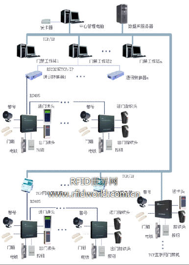 門禁管理工作站通過(guò)TCP/IP網(wǎng)絡(luò)訪問(wèn)系統(tǒng)數(shù)據(jù)庫(kù);通過(guò)RS485或TCP/IP控制和連接門禁機(jī),各款型號(hào)門禁機(jī)可在同一個(gè)系統(tǒng)中綜合使用,卡片識(shí)別和指紋識(shí)別可在同一個(gè)系統(tǒng)中綜合使用。