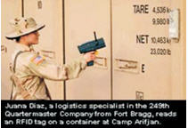 情況。在作戰(zhàn)時(shí),美軍的后勤補(bǔ)給線也以移動(dòng)的射頻識(shí)別讀取器來確保運(yùn)往前線的補(bǔ)給可以準(zhǔn)時(shí)到達(dá),并且利用自動(dòng)識(shí)別的技術(shù),縮短在交接物資過程與盤點(diǎn)中的時(shí)間,將后勤補(bǔ)給的效益充分發(fā)揮。