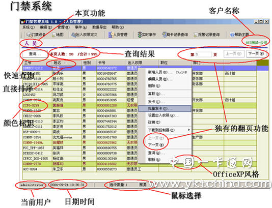 管理軟件:通過電腦對所有單元進(jìn)行中央管理和監(jiān)控,進(jìn)行相應(yīng)的時(shí)鐘、授權(quán)、統(tǒng)計(jì)管理工作。
