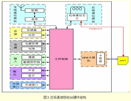 3、 主控制器:控制移動臺中的各種應(yīng)用,控制近場通信模塊工作模式的轉(zhuǎn)換;