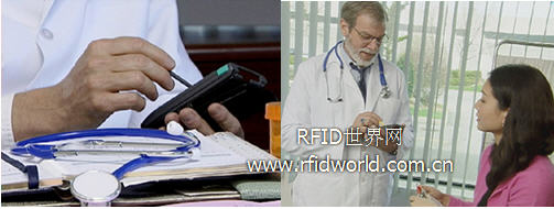 患者到醫(yī)生處看病時(shí),醫(yī)生可利用已聯(lián)網(wǎng)的終端機(jī),用電子標(biāo)簽讀寫器讀取患者的登記卡,查詢患者的病歷和以往的檢驗(yàn)記錄;