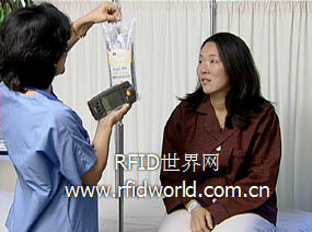 在患者上手術(shù)臺(tái)前,護(hù)士負(fù)責(zé)讀取患者的電子標(biāo)簽信息,由計(jì)算機(jī)確認(rèn),使確認(rèn)患者身份的手續(xù)更易得到實(shí)施,不會(huì)出現(xiàn)差錯(cuò)。