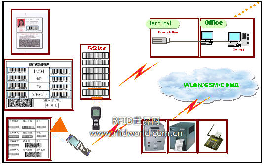 “社會(huì)應(yīng)急醫(yī)療防御系統(tǒng)方案”就是利用條碼自動(dòng)識(shí)別技術(shù)、電子標(biāo)簽技術(shù)、網(wǎng)絡(luò)技術(shù)和移動(dòng)通信技術(shù)(GPRS/GSM/CDMA)平臺(tái)建立起物流和信息流的高度一致。