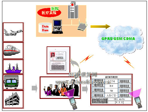 “非典”期間和非典以后,我們對(duì)現(xiàn)有的防御、監(jiān)控、物資調(diào)配等系統(tǒng)的信息化情況進(jìn)行深入地調(diào)查和研究,提出并總結(jié)了一整套基于自動(dòng)識(shí)別、網(wǎng)絡(luò)技術(shù)和移動(dòng)通訊技術(shù)的“社會(huì)應(yīng)急防御系統(tǒng)”的方案。