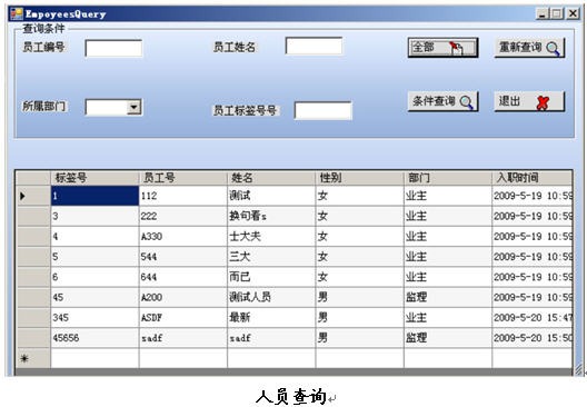 ★ 員工考勤查詢:可按各種指定條件進行人員的出勤情況查詢,如:編號、姓名、班次、工種、部門等查詢條件;可以按任意條件自動排序;