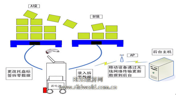 使用RFID移動設(shè)備進(jìn)行垛信息調(diào)整。