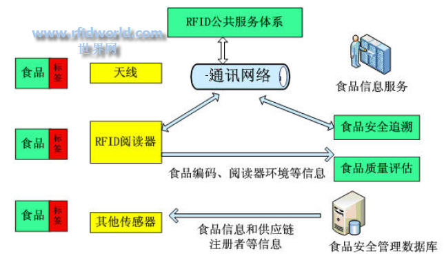 在目前的食品工業(yè)中,食品從生產(chǎn)到最終消費,需要經(jīng)過一些列的加工,運輸和儲存環(huán)節(jié),如果任何一個環(huán)節(jié)出現(xiàn)漏洞,就可能使食品處于不安全的狀態(tài),如接觸到傳染源或儲存不當(dāng)導(dǎo)致食品變質(zhì)。RFID技術(shù)為解決這一問題提供了有效的技術(shù)途徑,利用它可以實現(xiàn)食品安全管理、追溯和評估。