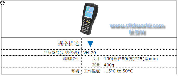 VH-70可以實現(xiàn)移動閱讀,產(chǎn)品性能穩(wěn)定工業(yè)級設(shè)計,可以滿足室內(nèi)外全天候工作,可應(yīng)用于對產(chǎn)品的抽檢、信息采集等環(huán)節(jié)。該產(chǎn)品自帶WinDowsCE操作系統(tǒng),并集成藍牙、WIFI、GPS、一維條碼等多種模塊。