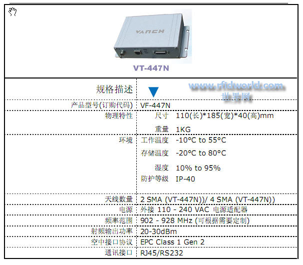VF-447N是一款高性能閱讀器,采用ARM雙核處理器,集成TCP/IP網(wǎng)絡(luò)通訊接口,可以外接最多4個天線,可方便的組成RFID讀取識別網(wǎng)絡(luò)。