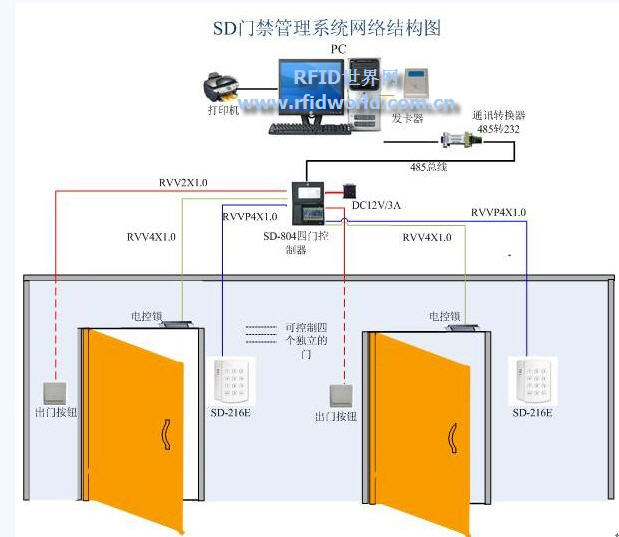 深圳奧仕德科技485聯(lián)網(wǎng)4門門禁方案