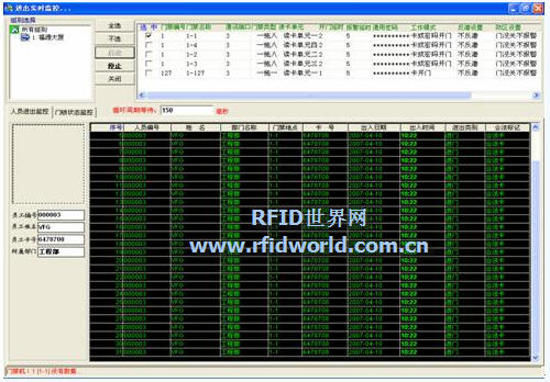 5)、啟動/關閉實時監(jiān)控功能:實時監(jiān)控界面可以讓用戶瀏覽進出記錄和各信息點狀態(tài)情況。
