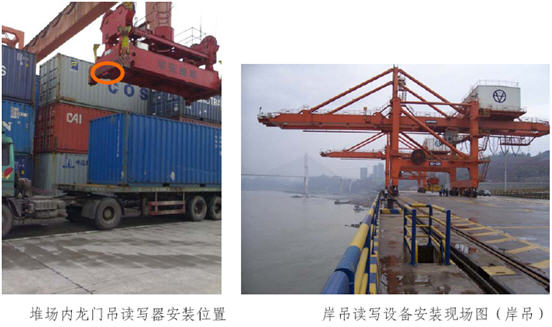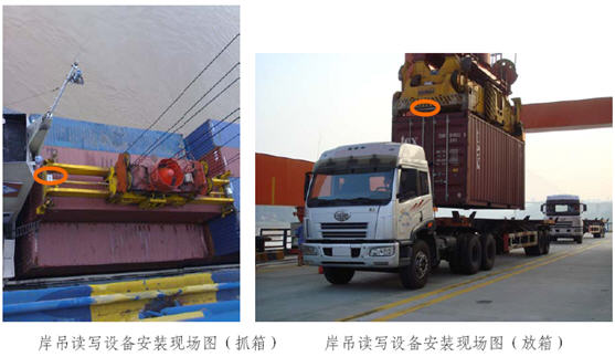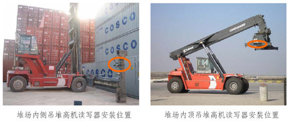 通過在港口堆場的進出閘口、堆場內(nèi)側(cè)吊堆高機、堆場內(nèi)頂?shù)醵迅邫C、堆場內(nèi)龍門吊、岸吊、橋吊上布置讀寫設(shè)備,整個集裝箱物流鏈所涉及到的所有數(shù)據(jù)采集點的可能采集設(shè)備都已覆蓋,完整解決集裝箱物流鏈的讀寫設(shè)備安裝和數(shù)據(jù)采集問題。