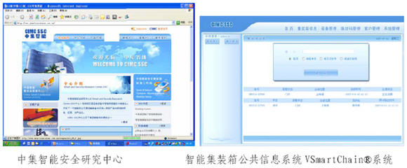 通過中集集團開發(fā)的第三方智能集裝箱公共信息系統(tǒng)VSmartChain®系統(tǒng),各數(shù)據(jù)采集點的數(shù)據(jù)都將通過Internet 遠程傳輸?shù)絍SmartChain®系統(tǒng),VSmartChain®系統(tǒng)作為第三方公共信息系統(tǒng),將可查詢到任何一個集裝箱的全壽命周期信息,包括出廠、歷史、當前信息等,從而實現(xiàn)對集裝箱的跟蹤和監(jiān)管,為政府監(jiān)管部門和普通行業(yè)用戶提供有效及時信息,有效服務(wù)于集裝箱國際反恐、貨運安全、貿(mào)易便利、與資產(chǎn)便捷管理。