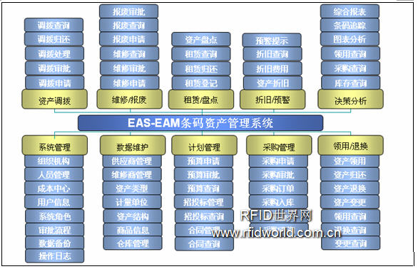 EAS-EAM系統(tǒng)可以實現(xiàn)以下功能:預(yù)算計劃管理、資產(chǎn)購置管理、合同管理、招投標(biāo)管理、資產(chǎn)入庫管理、資產(chǎn)調(diào)撥管理、資產(chǎn)維修管理、資產(chǎn)領(lǐng)用退換管理、資產(chǎn)報廢管理和資產(chǎn)折舊、預(yù)警管理及綜合統(tǒng)計分析、報表系統(tǒng)等。