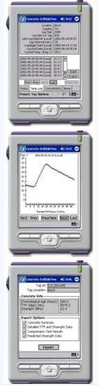 5、通用軟件:非常輕松的將從混凝土監(jiān)控軟件得到的數(shù)據(jù)傳到Microsoft Office 應(yīng)用軟件中在筆記本或手持PC上運行的軟件,或?qū)τ诘湫偷捻椖窟\用標準ASTM C1074模式,或針對急需工作的采用快速模式。 圖解式評估及對比,每個單獨的標簽都存有注釋信息。(比如:混凝土已經(jīng)灌注了一小時)