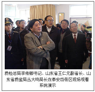 系統(tǒng)自05年4月正式啟動,在系統(tǒng)整個發(fā)展過程中,受到了質(zhì)檢總局李傳卿書記及食品司、監(jiān)督司等各級領(lǐng)導(dǎo)的廣泛關(guān)注。其中,質(zhì)檢總局李傳卿書記于05年12月親自到系統(tǒng)的試點(diǎn)單位泰安岱岳區(qū)提取了系統(tǒng)匯報(bào)并觀看了演示;此后,廣東、廣西、黑龍江、湖北等十幾個省市多次前來參觀學(xué)習(xí),接待次數(shù)達(dá)百余次。