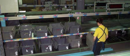 物流作業(yè):八條Put-to-light電子配貨線、每線可以處理92家店