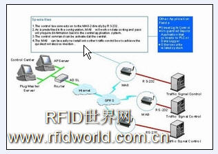MA8與交通信號控制器、偵測裝置直接透過RS-232接口連結(jié),在交通信號控制器方面完全不需更動現(xiàn)有設(shè)定及撰寫相關(guān)程序即可連接,MA8提供內(nèi)建的圖型化接口,可設(shè)定依照交通信號通訊協(xié)議及數(shù)據(jù)格來作數(shù)據(jù)傳輸,另可針對主管機關(guān)所需求的狀況作篩選,以過濾掉一些不必要的信息,透過GPRS系統(tǒng)與Internet,將數(shù)據(jù)傳回行車控制中心。也可透過Gateway完成與現(xiàn)有交通控制中心設(shè)備的結(jié)合,節(jié)省通訊設(shè)備及大量的線材,管理及維護上也較為容易,系統(tǒng)建置快速又節(jié)省成本,為各系統(tǒng)整合商最佳解決方案。