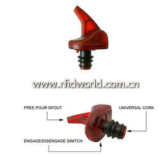 噴嘴里含一個(gè)電池供電的 418 MHz RFID標(biāo)簽和測(cè)量設(shè)備。當(dāng)酒吧招待員倒酒時(shí),傾斜的酒瓶激活了標(biāo)簽和測(cè)量器,噴嘴可以測(cè)量倒酒量。標(biāo)簽接著發(fā)射這個(gè)信息(和RFID標(biāo)簽的唯一識(shí)別號(hào),酒的品牌和瓶子大小)到閱讀器天線。噴嘴標(biāo)簽最大讀取距離可達(dá)到100英尺。