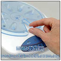 工作流程如下:當(dāng)醫(yī)護(hù)人員從病人身上移去靜脈止疼點(diǎn)滴后,每個(gè)病人都分配一個(gè) RFID腕帶。腕帶里含符合 ISO 15693標(biāo)準(zhǔn)的無源 13.56 MHz RFID嵌體。腕帶芯片記錄著該病人醫(yī)療記錄的定位碼(醫(yī)院用于追蹤病人醫(yī)療記錄和藥品處方)。負(fù)責(zé)這位病人的護(hù)士接收到醫(yī)院藥房里送來止痛藥品后(以密封托盤的形式),將托盤放入MOD里,MOD集成一個(gè)RFID閱讀器。接著,護(hù)士采用 MOD和手持或移動計(jì)算機(jī)之間的藍(lán)牙通訊連接對 MOD進(jìn)行編程。手持或移動計(jì)算機(jī)運(yùn)行的軟件由 Avancen開發(fā)。