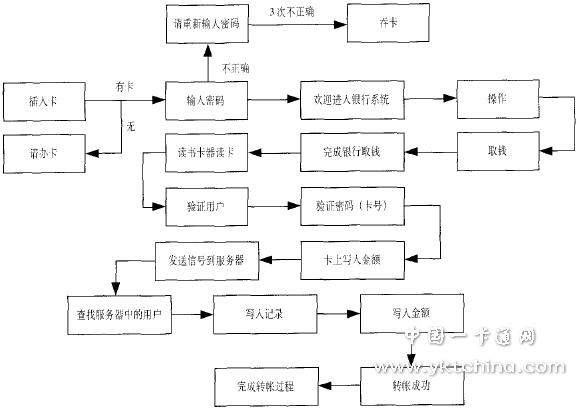 系統(tǒng)采用轉(zhuǎn)賬終端來實現(xiàn)銀行卡與校園卡之間的資金劃賬轉(zhuǎn)移。學生(或家長)將錢存在校園卡的銀行賬戶內(nèi),當需要轉(zhuǎn)賬的時候?qū)W生通過轉(zhuǎn)賬終端將銀行賬戶的錢轉(zhuǎn)存到學校賬戶校園卡上 學生就可持卡在校內(nèi)消費。此時 相應的功能和管理就由學校來實現(xiàn),銀行和學校之間只須確保轉(zhuǎn)存的記錄和金額一致即可。具體轉(zhuǎn)帳流程如圖5。