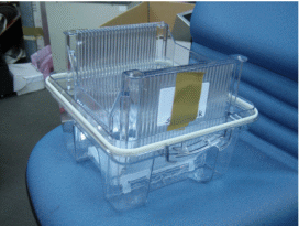 同時需考量此RFID卷標貼附位置能滿足所有RFID應用流程,我們實驗結果是貼在晶圓盒內(nèi)層拖盤(圖17)上方,同時RFID標簽也會存放晶圓批號等廠內(nèi)品管作業(yè)流程所需代號。