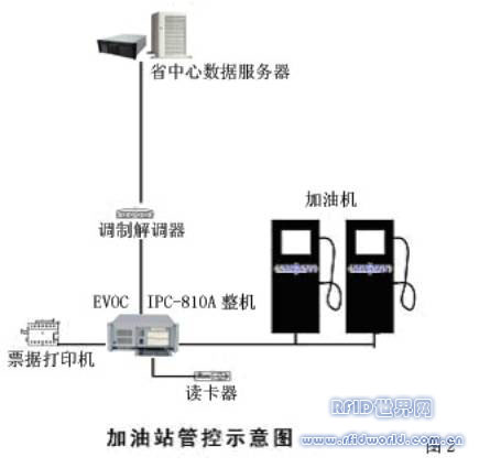 整個(gè)加油IC卡工程中的25000個(gè)加油站都將配置一臺(tái)管控PC做為業(yè)務(wù)終端。管控PC負(fù)責(zé)日常IC卡加油的數(shù)量和金額統(tǒng)計(jì),交易票據(jù)的打印,加油機(jī)監(jiān)控,每日將銷(xiāo)售交易發(fā)往省數(shù)據(jù)中心,并將下載全國(guó)IC卡用戶的賬戶管理信息和最新油價(jià)等。以下是管控示意圖: