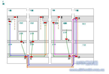 3、RFID數(shù)據(jù)采集點的分布圖:(紅色為采集點)