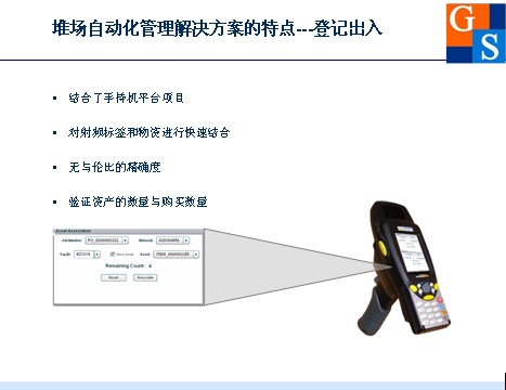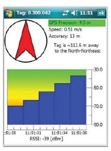 當(dāng)設(shè)備到達卸貨場時 在設(shè)備上貼上標(biāo)簽該設(shè)備就有一個識別代碼輸入計算機或定位服務(wù)器然后這些設(shè)備放入倉庫,工人們只要訪問庫存清單就可以選擇所需設(shè)備核材料。將設(shè)備信息傳輸至手持讀寫器,員工拿著手持讀寫器只要經(jīng)過貼簽的設(shè)備很快就能找到所需設(shè)備。手持讀寫器屏幕上的指針指向所選擇的設(shè)備。接近設(shè)備時手持讀寫器上顯示設(shè)備的距離分發(fā)出警報,指引工作人員找到設(shè)備。 易于使用的手持讀寫器屏幕上用紅點顯示標(biāo)簽,資產(chǎn)的定位,用移動的藍點顯示用戶的位置。點擊紅點可以獲得更多標(biāo)簽信息。