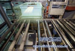 系統(tǒng)可依據(jù)這項(xiàng)資訊,將運(yùn)送箱存放至指定位置。如果對(duì)應(yīng)的車體是從高架存放設(shè)施輸送到組裝線的起點(diǎn),中央電腦也會(huì)依據(jù)該訂購(gòu)編號(hào),調(diào)度相關(guān)的裝配生產(chǎn)線,系統(tǒng)會(huì)從存放地點(diǎn)取出裝配生產(chǎn)線,經(jīng)傳輸站臺(tái)再次辨識(shí)后,再分派到組裝制程。在裝入車體前,第三個(gè)站臺(tái)會(huì)再次確認(rèn)資料,之后便會(huì)將儲(chǔ)存的資料清除,以主動(dòng)避免日后發(fā)生混淆。