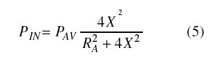 在UHF RFID芯片設(shè)計(jì)中,天線端的等效阻抗可用電抗與電阻并聯(lián)來表示(圖3)。假設(shè)天線具有最小散射,則反向散射功率由式2表示: